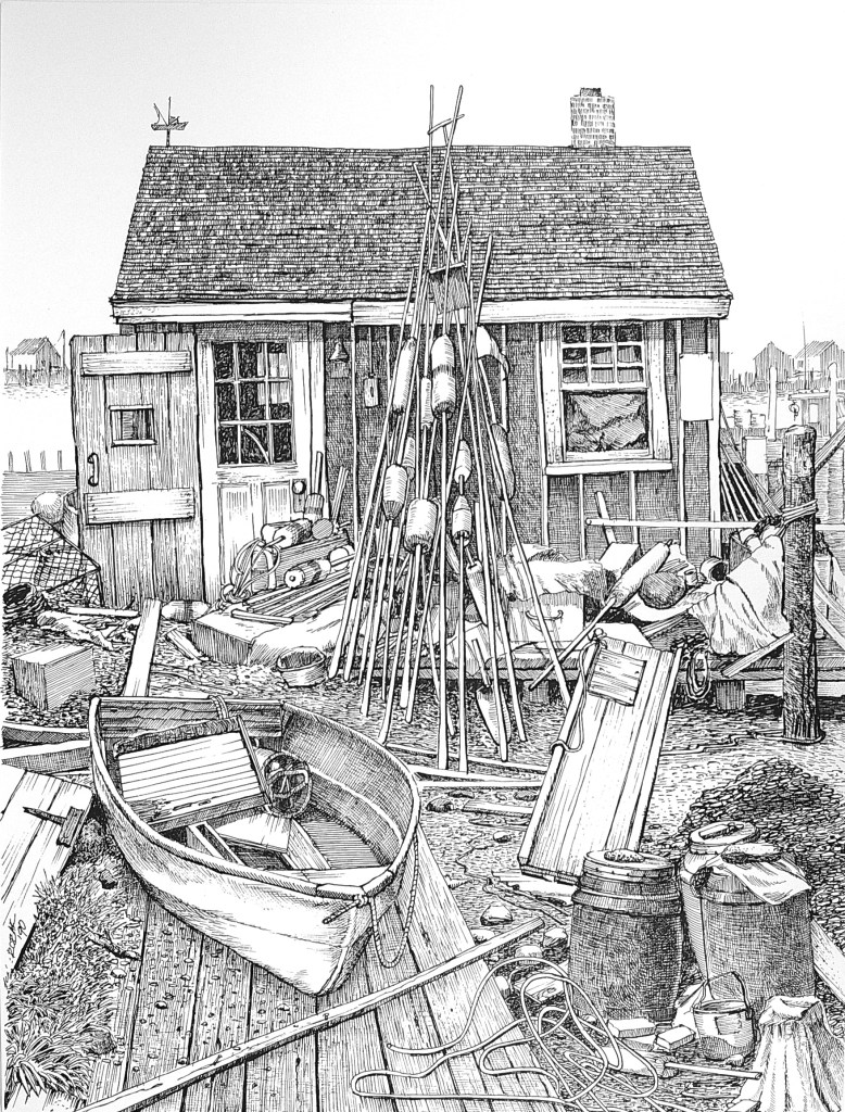 Want to improve your colored pencil skills? Then, try these two strategies that have worked for me. First, choose a subject you have not attempted. Just as we need to occasionally take a break from our daily activities to refresh ourselves, planning a respite from a favorite subject can foster surprising results. For example, over the years I have been fortunate to have illustrated examples of colonial architecture and people of that period. I enjoy the research and the challenge of bringing the past to life. But I do not focus on those subjects exclusively. I’ve found that if I create only historical scenes, my style and thinking become stagnant and routine.